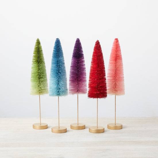 Celebrate the holidays with our hand-dyed bottle brush trees. These trees look great on their own or they can be mixed together with our handmade velvet trees to create an eye-catching centerpiece display. The hand-dyed ombre trees have distinct gradations of color from light to dark; truly eye catching!  You'll find our trees are larger than the standard miniature trees available elsewhere; these create an impressive set.