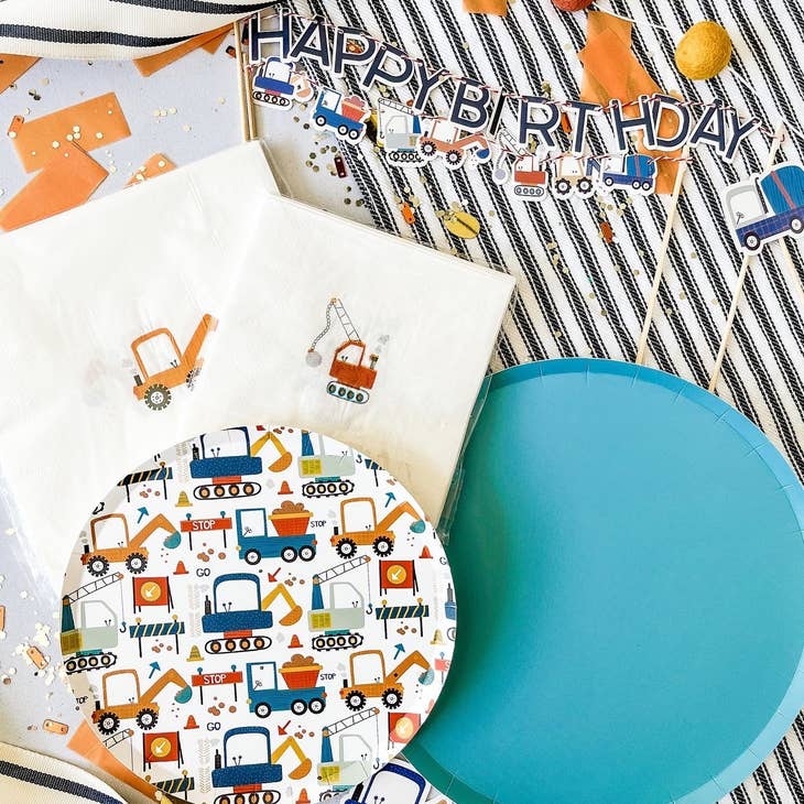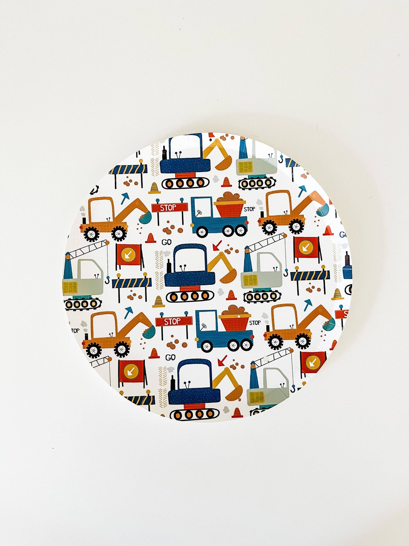This vibrant and fun-filled plate features a construction theme, complete with dump trucks, cranes, and cement trucks. Whether it's a little builder's celebration or a construction-themed bash, this plate will add an extra level of excitement to the festivities.