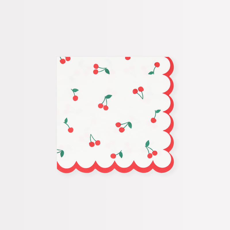 With a touch of fun and flair, these cherry patterned napkins are a must-have staple for any party. The red scalloped edge adds a stylish touch, perfect for layering on your table and bringing a vibrant feel to any garden party or picnic.