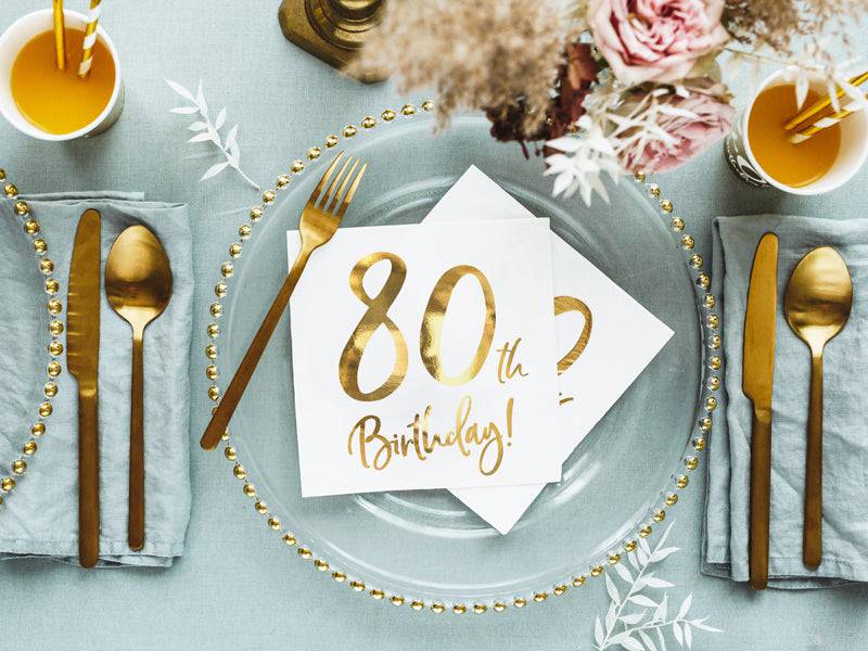 Wish someone a happy birthday with these 80th birthday napkins! These napkins are perfect for a milestone birthday celebration and are sure to bring an extra dose of fun and excitement to any party table. With a golden inscription and fun, celebratory design, they will be sure to make the day extra special for the guest of honor.