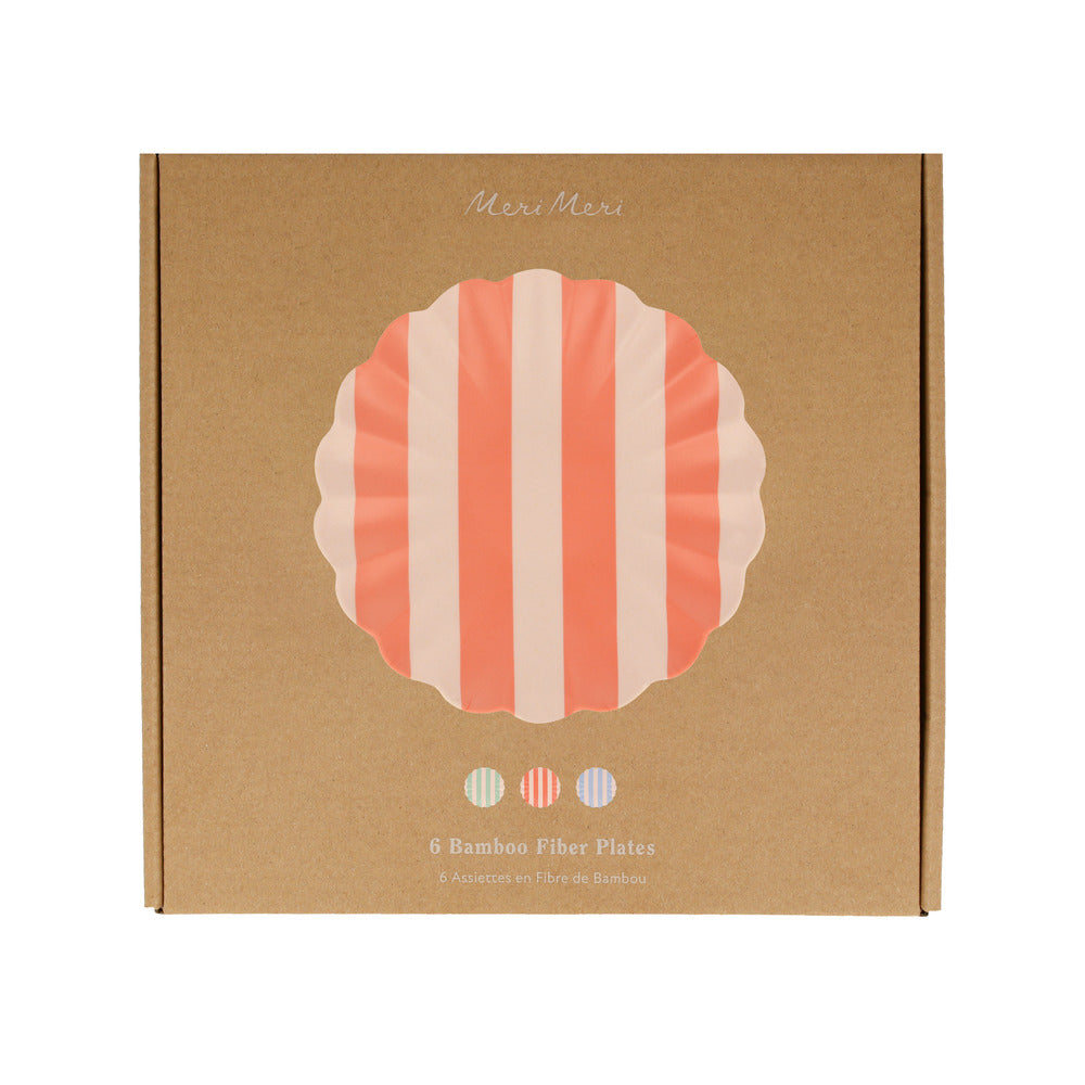 Make a statement with our Stripy Reusable Bamboo Small plates! These bold, timeless stripes come in a fun combo of red, mint, blue, and pale pink. Durable and eco-friendly, they'll be the perfect pop of color at any party! (Bon voyage, paper plates.)