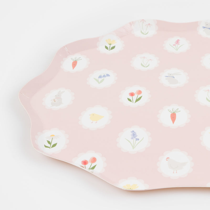 Cameos are having a moment – beautifully inspired by vintage textiles - and our clever designers have made them into the most charming Easter paper dinner plates. The combination of the soft pink background, with springtime flowers and icons, will look perfect at your Easter dinner.