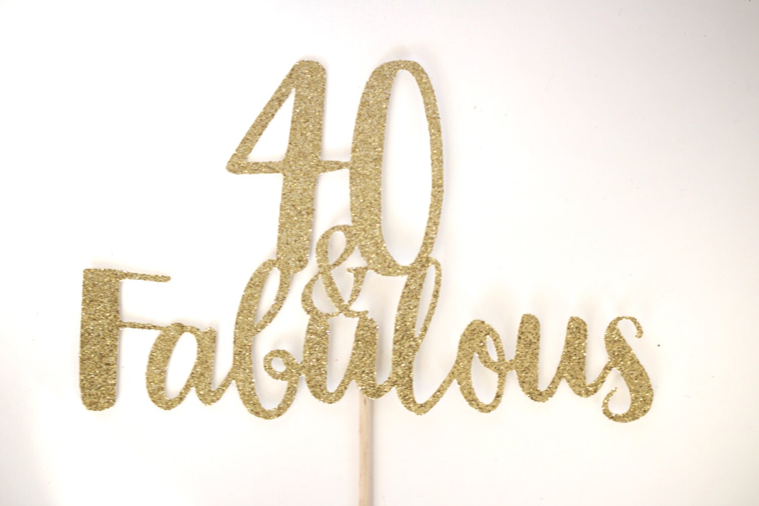 Forty and Fabulous, 40th Birthday Cake topper, gold glitter script decoration, &, 40 & Fab, Over the hill celebration
