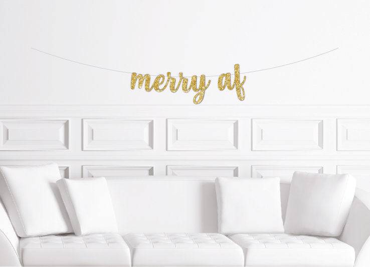 This listing is for one paper, glitter block letter banner of the popular Christmas phrase: MERRY AF