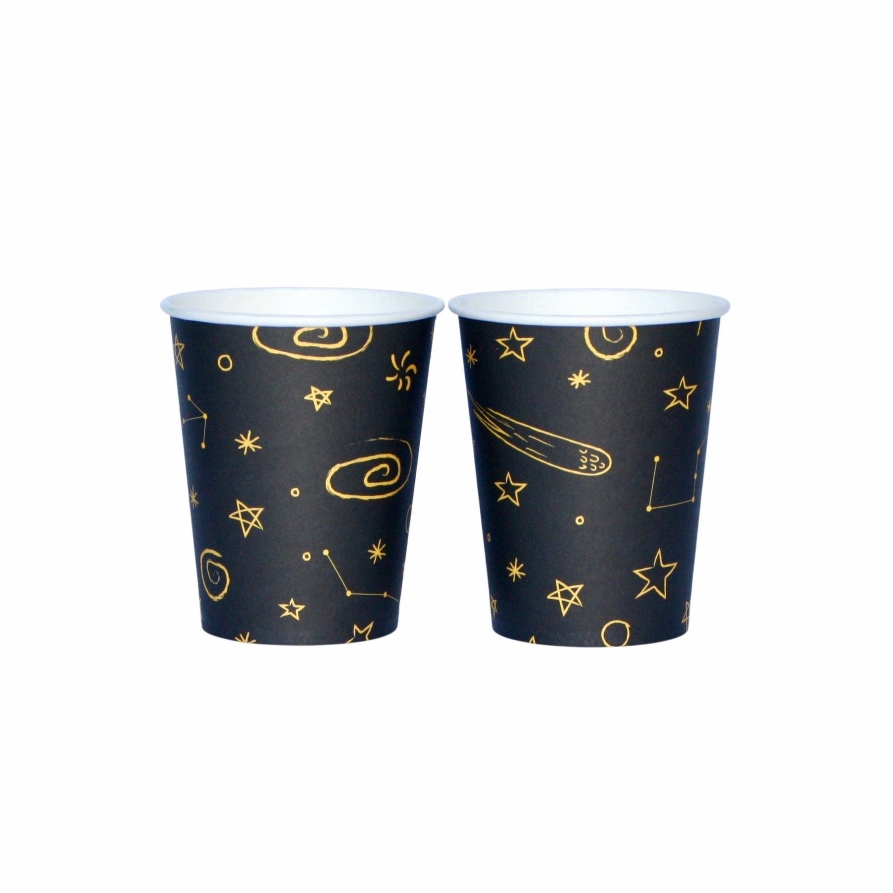 Featuring yellow and dark colors, these cups are inspired on space adventures and will take your decoration to another dimension! Designed by Pooka Party