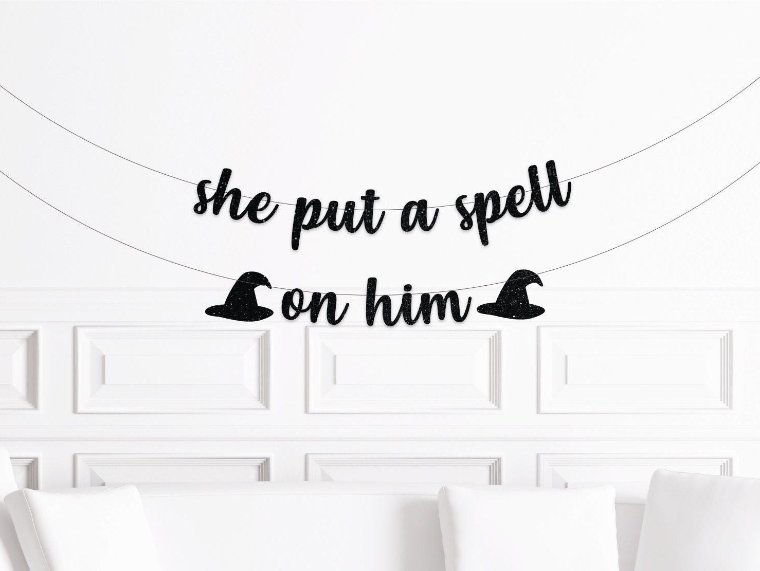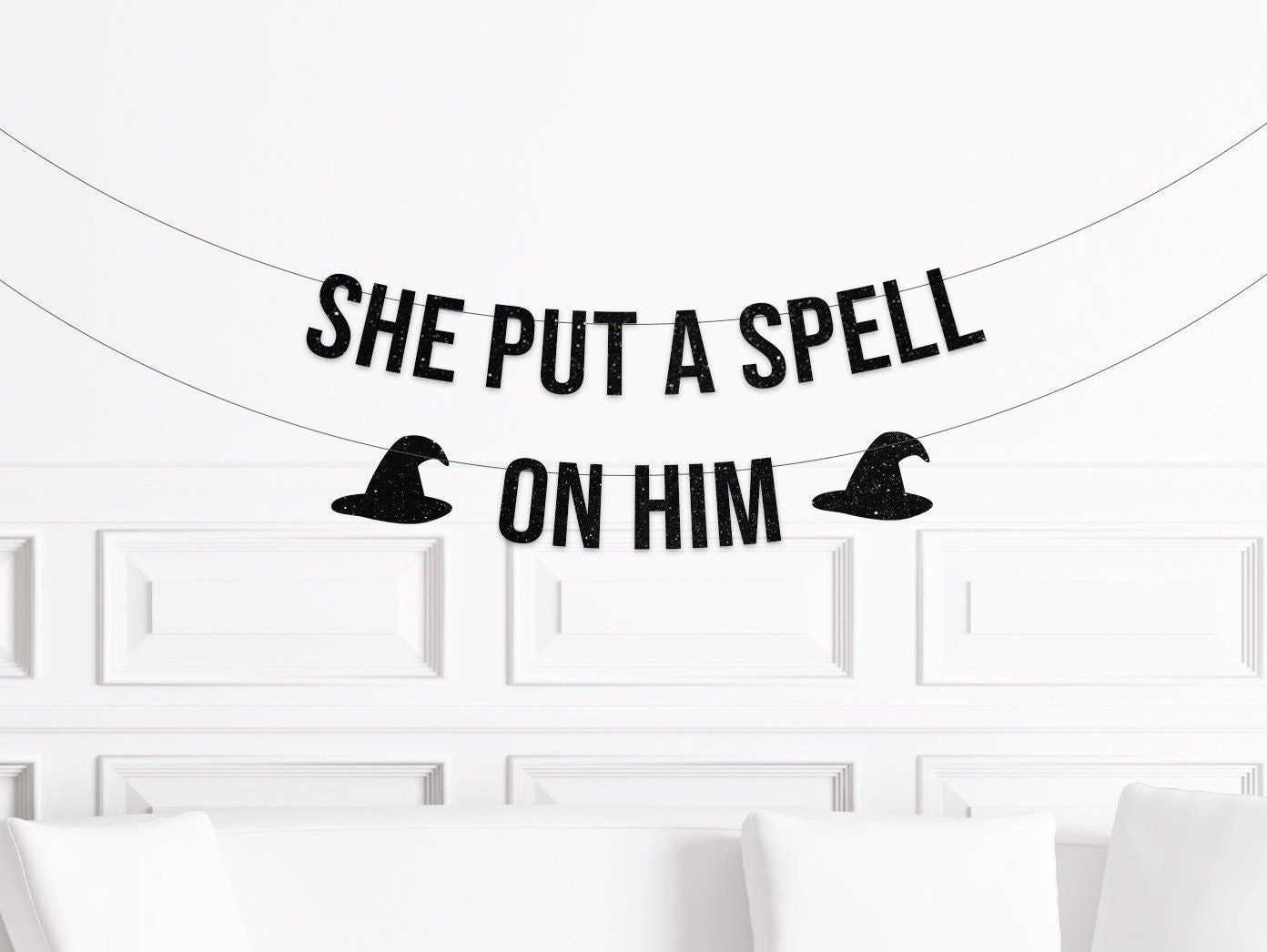 Halloween Bachelorette Party Supplies, She Put a Spell on Him Banner Sign, Hocus Pocus Bridal Shower Decorations Decor