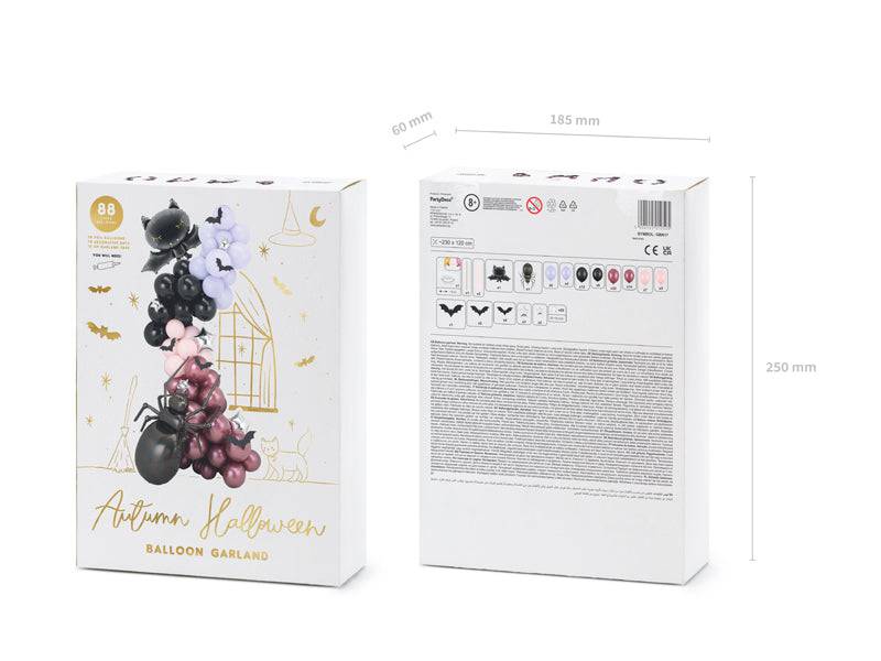 Set contains: balloons (88 pcs), modeling balloons (3 pcs), foil balloons (7 pcs), paper bats (7 pcs), foam tape (20 pcs), paper straw (1 pc), 5 m of balloon garland tape. Size approx. x cm.