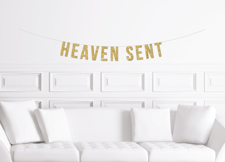 Heaven Sent Baby Shower Banner / Gold Glitter Letter Sign / Baby Girl Boy Decorations / Decoration Decor Unisex Blessed Expecting Gender