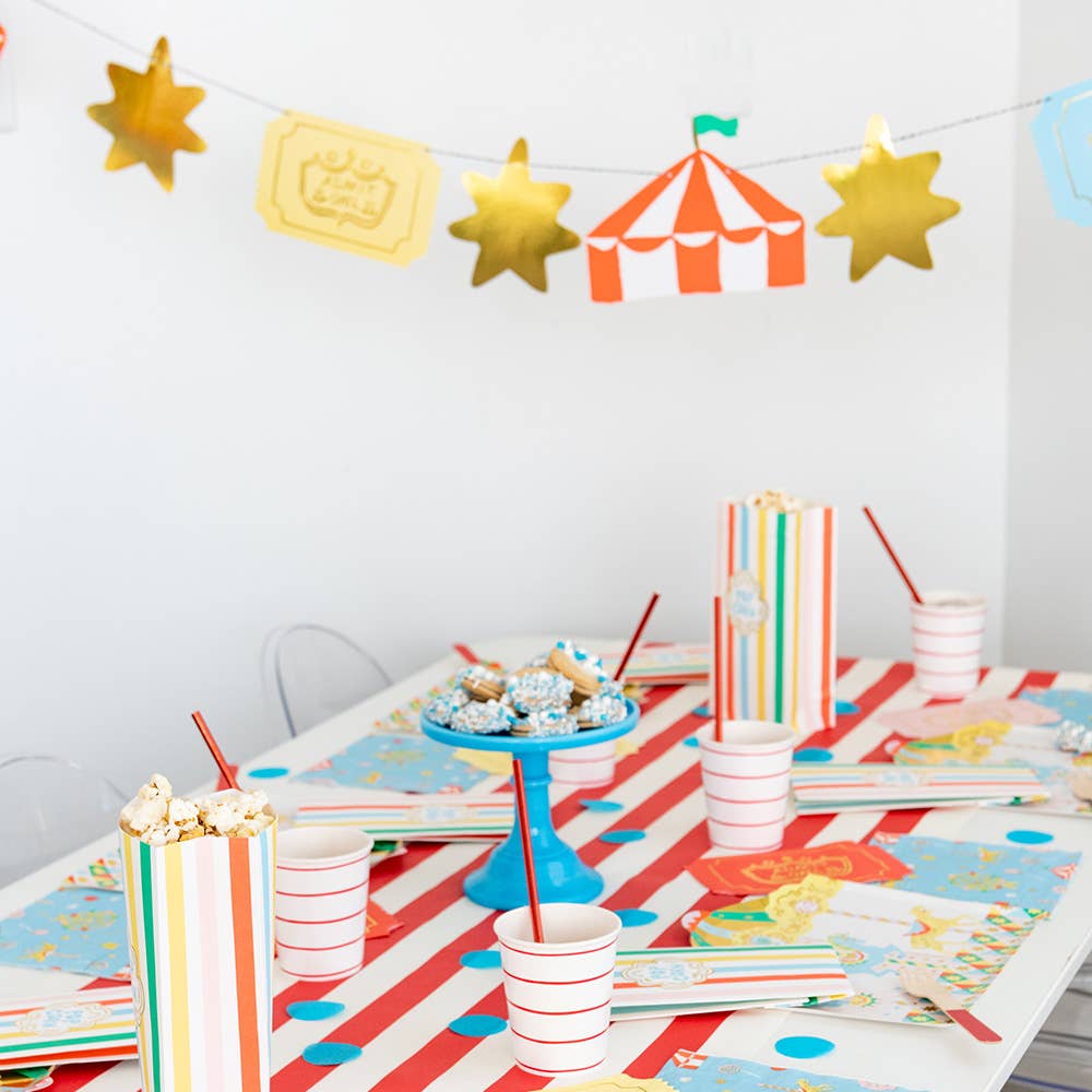 Carousels and cotton candy...oh my! Featuring carnival-inspired colors and pops of gold foil, these thingamajigs bring all the fair fun! We think they're perfect for fair, carnival, and circus parties! What exactly are thingamajigs, you ask?! They are our favorite do-it-all party decorations! String them together to make a garland, attach them to balloons, hang them on the wall...you decide! Illustrated by Emily Isabella for Daydream Society Package