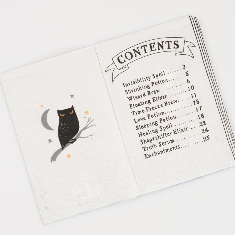Add a magical touch to your party with our Meri Meri Halloween Making Magic Spell Book Paper Napkins! Crafted to look like a spell book, these napkins will cast a spell on your guests and add an enchanting effect to your celebration. Perfect for wizard and witch parties, Halloween parties, and more. (No "Abracadabra" needed!)