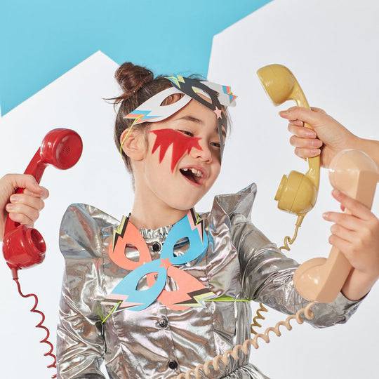Party guests can instantly transform into superheroes with these fabulous masks. They have bright neon colours, lightning bolt details and sparkly silver holographic foil. They're great to pop into party bags too.
