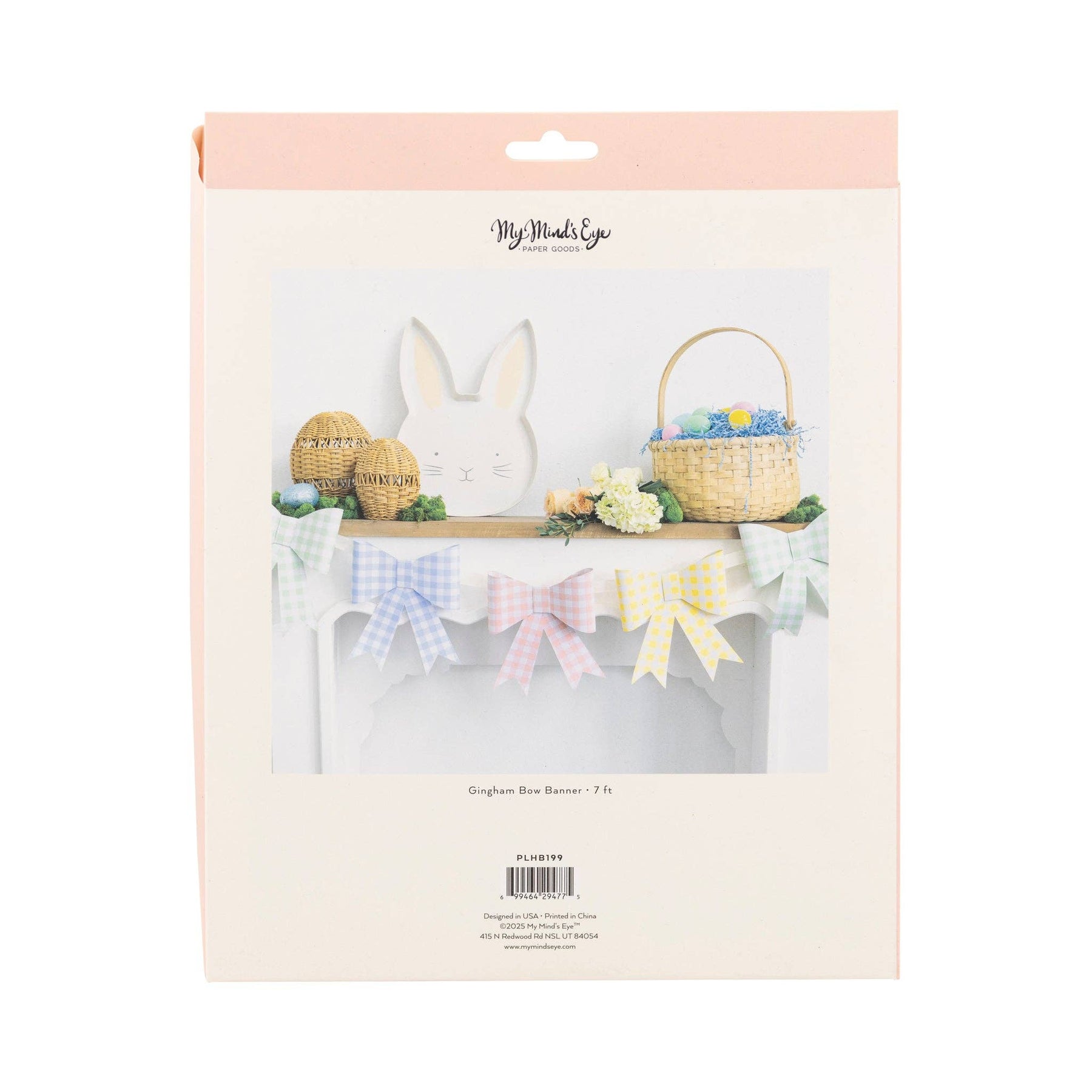 Brighten up your home decor with our Gingham Bow Banner, a perfect touch of spring made from paper. With its playful gingham design, this banner adds a pop of color and charm to any space. It's the ultimate quirky addition to your spring decor!