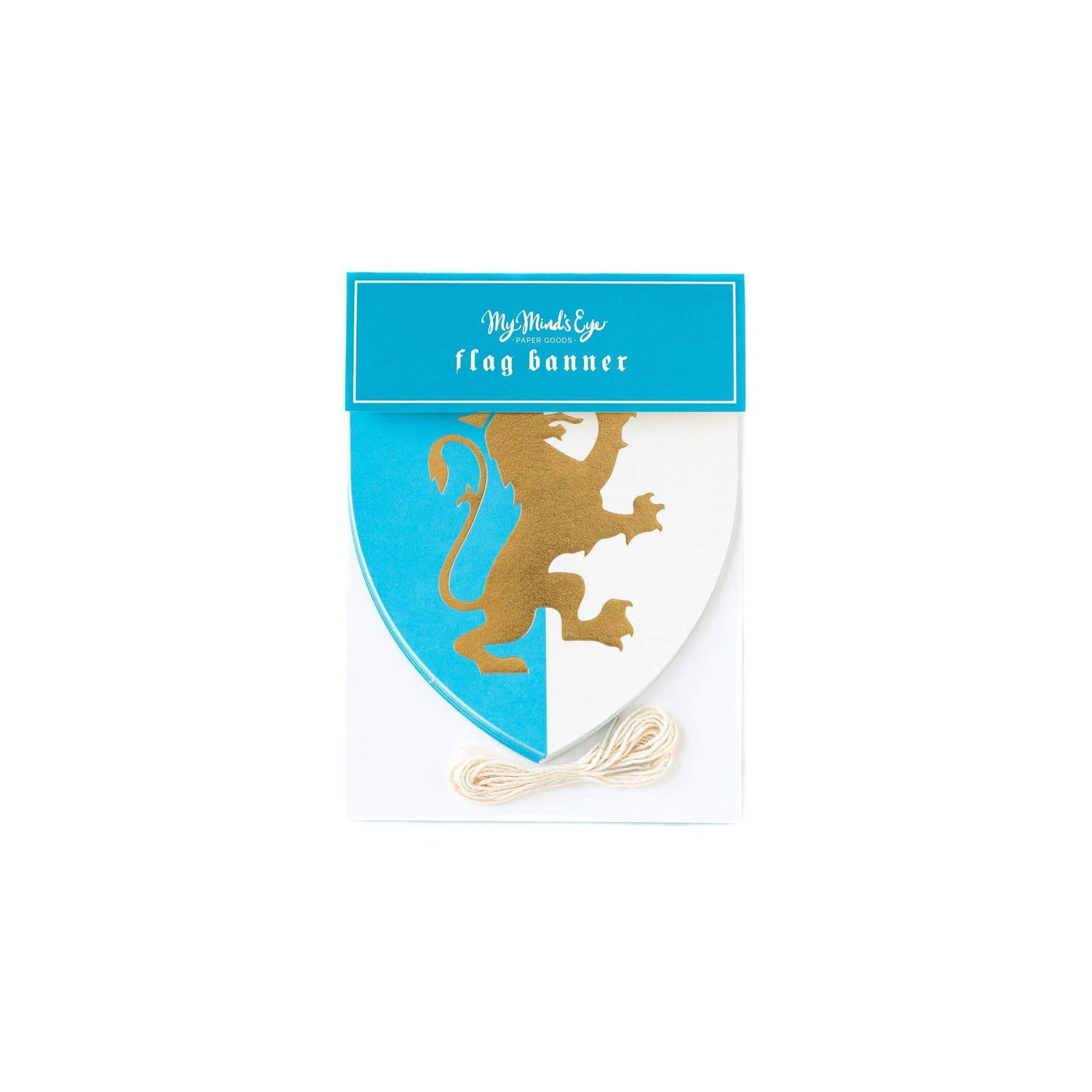 3 sets makes one wholesale pack • Banner is approximately 6' long • 12 - 4.75" x 5.75" shield banner pieces • 7 feet of twine • Gold Foil