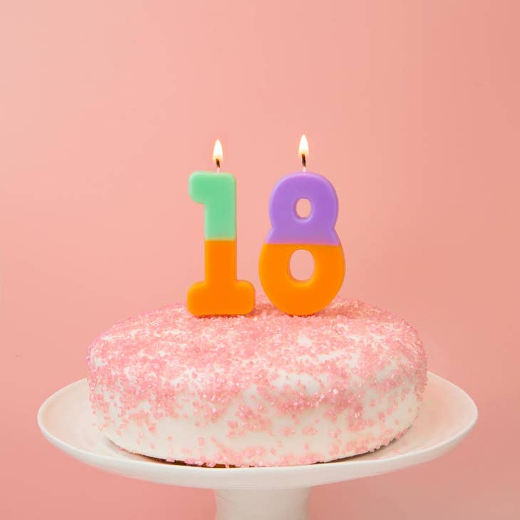 Celebrate a milestone birthday in color with this Number 1 Candle by Talking Tables. This bright orange and mint green number candle is the perfect cake decoration for a kids 1st birthday, as sweet 16th or 21st.
