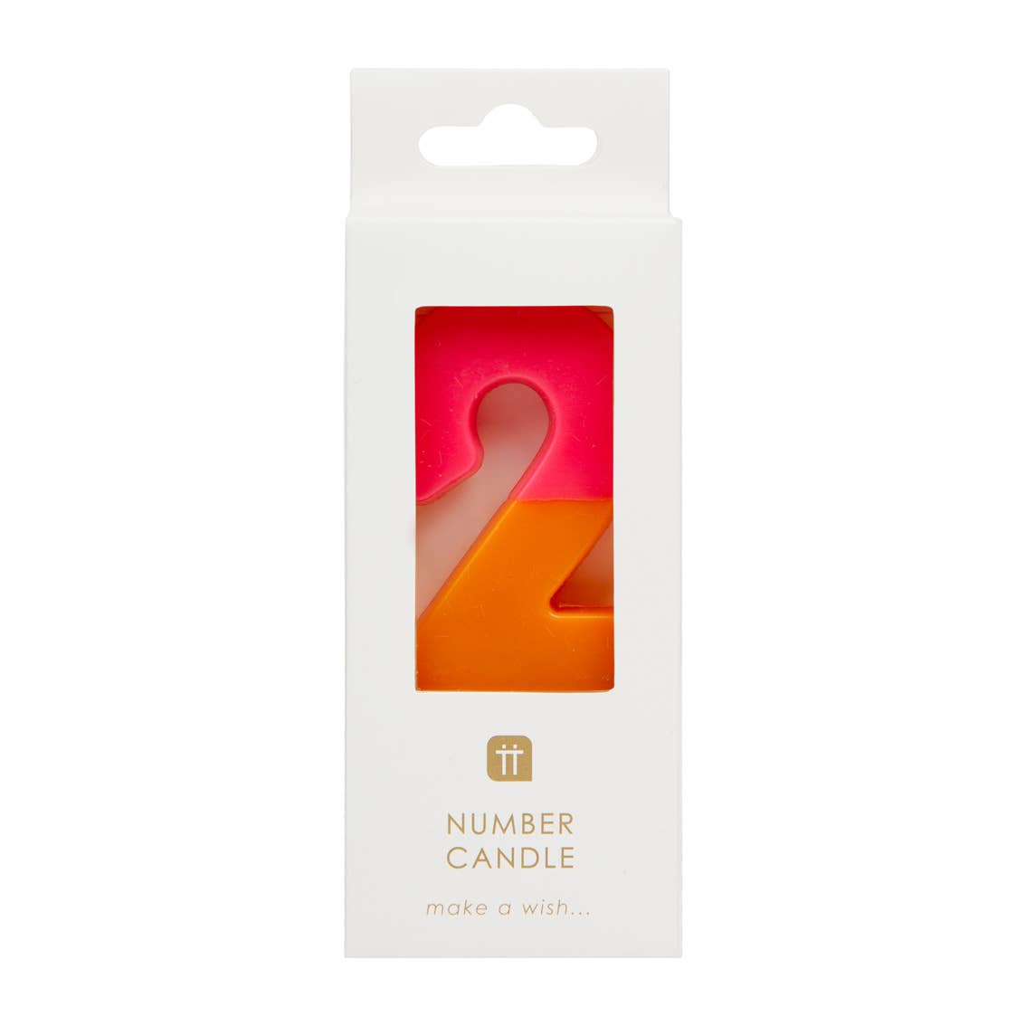 Celebrate a birthday in color with this Number 2 Candle by Talking Tables. This bright orange and pink number candle is the perfect cake decoration for a kids 2nd birthday, a 21st or special anniversary.
