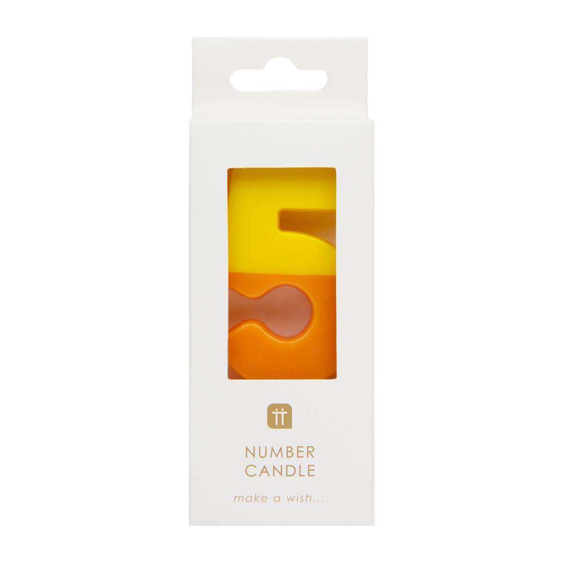 Celebrate a birthday in colour with this Number 5 Candle by Talking Tables. This bright yellow and orange number candle is the perfect cake decoration for a kids 5th birthday, a 50th or special anniversary.