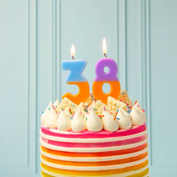 Celebrate a birthday in color with this Number 8 Candle by Talking Tables. This lilac and orange number candle is the perfect cake decoration for a kids 8th birthday or 18th celebration.