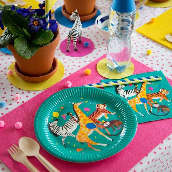 Get the party started by filling these animal party plates with tasty treats to make your guests go wild! These disposable plates are perfect for a kids safari or jungled themed party. Pair with our 'Party Animals' range for matching tableware and decorations.
