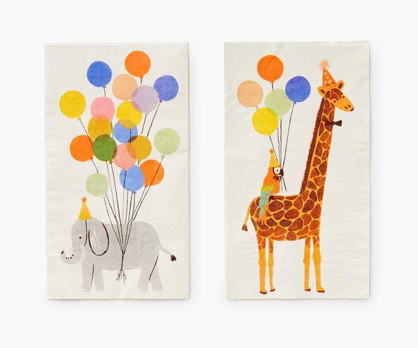 These adorable double-sided guest napkins featuring party animals and festive balloons will bring an extra dose of fun to your party table!