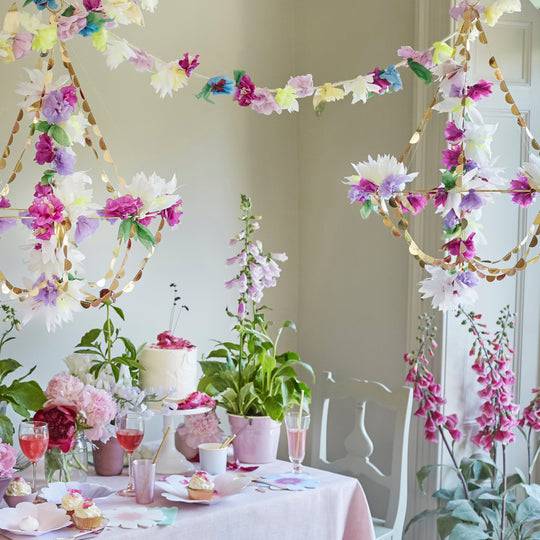This beautiful feminine floral blossom garland would be a great addition to your spring or Easter parties.
