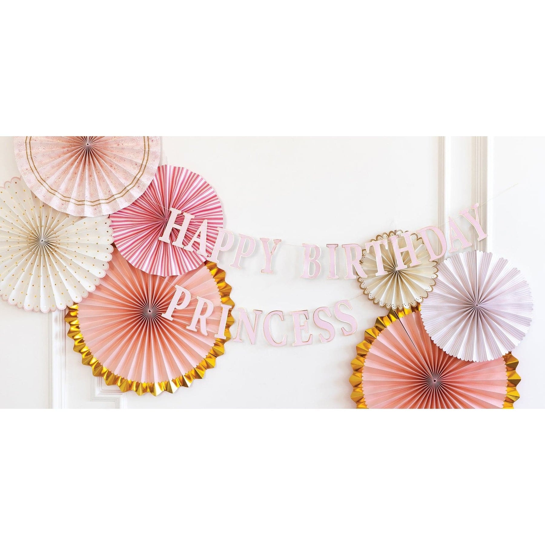 Celebrate your princess's special day with this beautiful banner. Perfectly pink letters with gold foil accents spell out a cheery birthday message. This birthday banner will add just the right amount of sparkle to your party space!