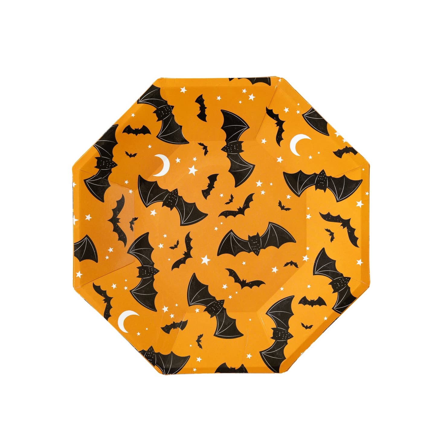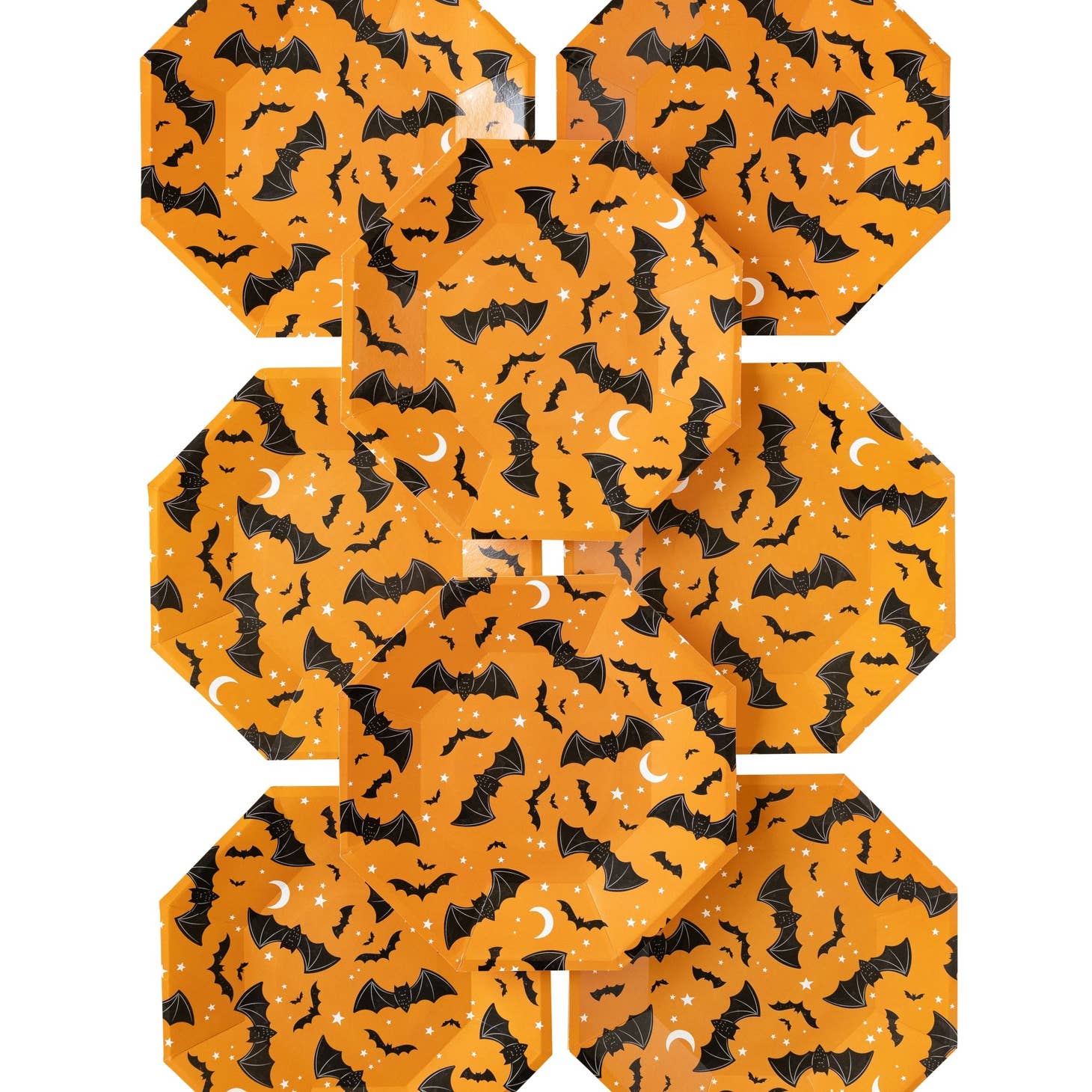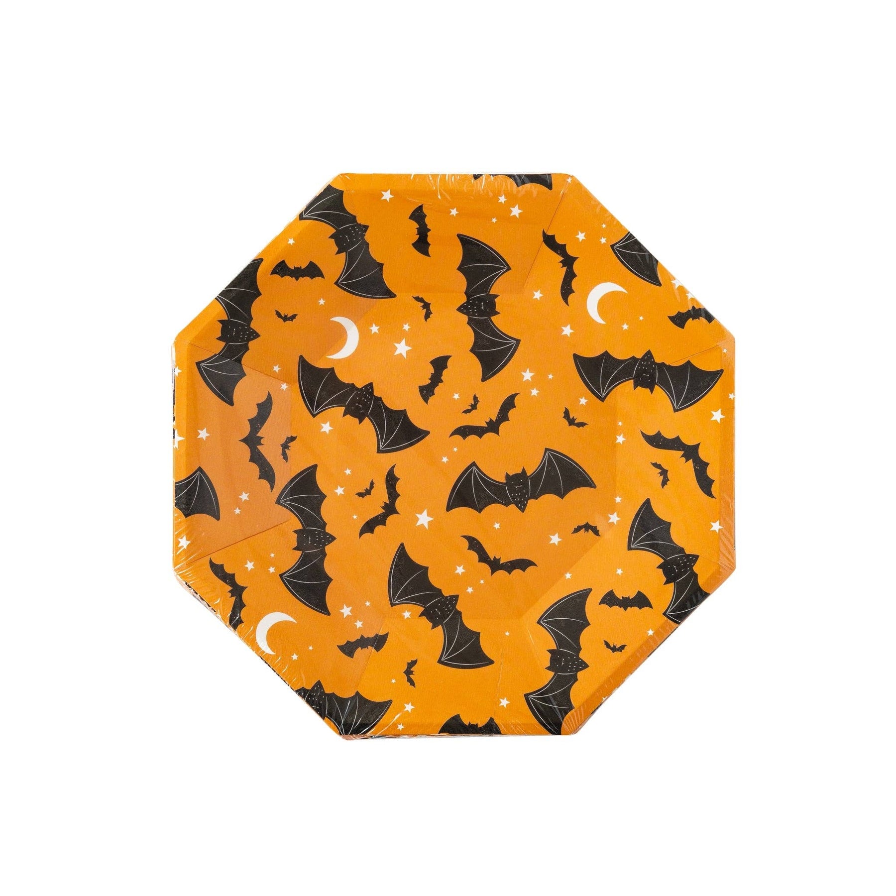Perfect for kids and adults alike, these vibrant orange and black plates feature an array of bats, moons, and stars, creating an eerie yet fun atmosphere. Whether you're serving up sweet treats or savory snacks, these plates are sure to be a hit at your Halloween event!