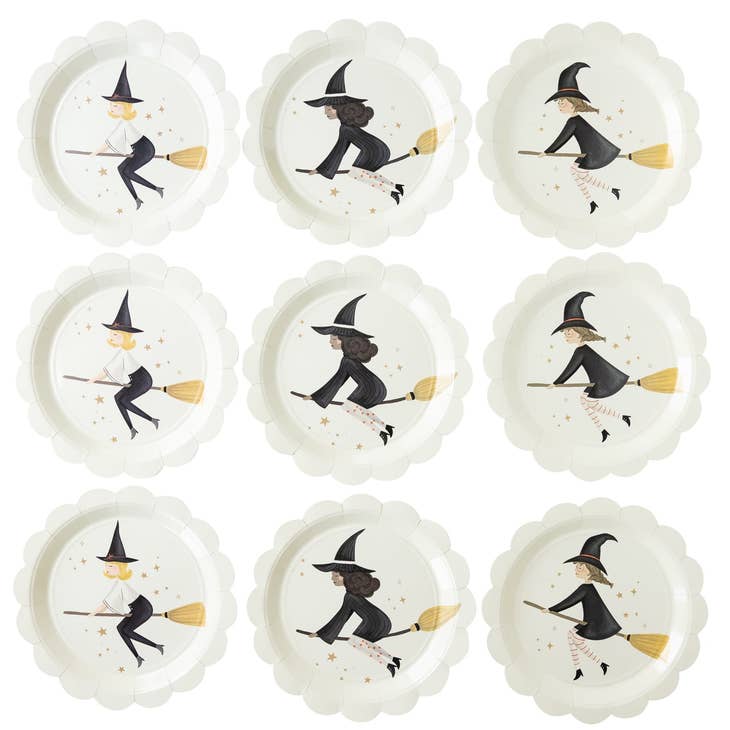 Gather the ghouls for a fun and magical night, and make sure that there are magical plates to enjoy fantastic goodies. This witches plate set features 3 unique and whimsical witches, and with scalloped edging these paper plates add a frightful touch to any Halloween celebration!