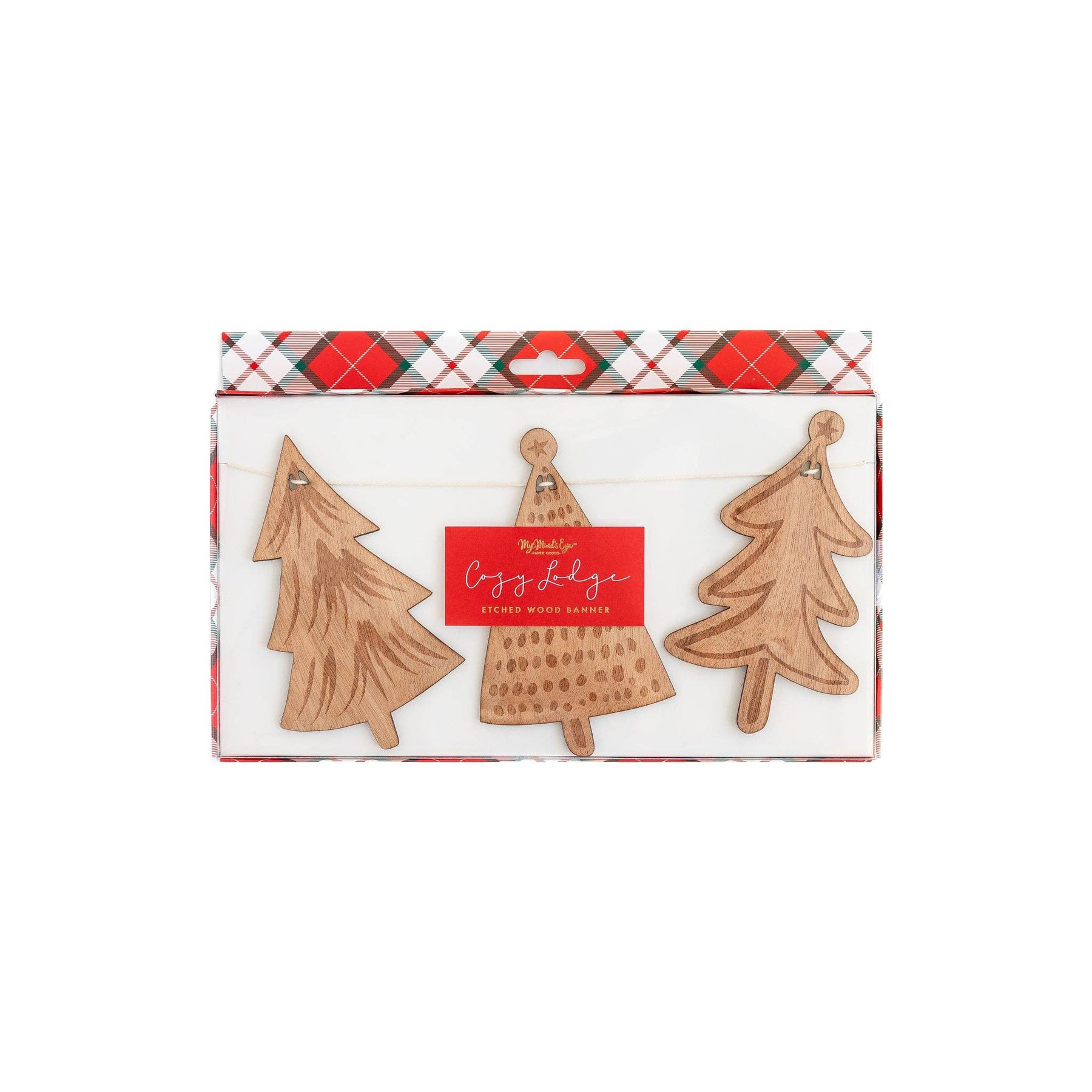 This wood banner will turn your homeinto a winter woodland this Christmas. Itincludes five wood etched tree designs that will give your Christmas decorations a rustic and cozy feel this year.