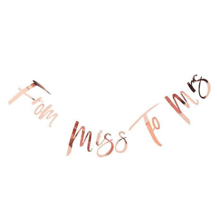 This gorgeous script From Miss to Mrs banner will be the highlight of your bridal shower or bachelorette party celebration. The perfect compliment to your other rose gold party decor.