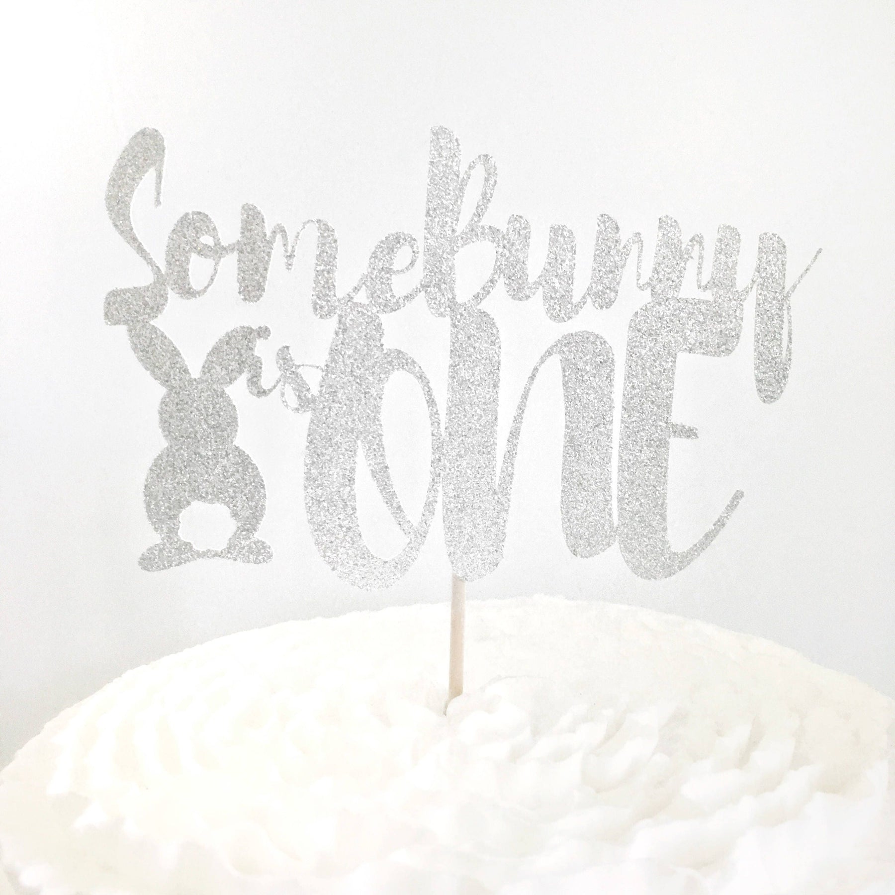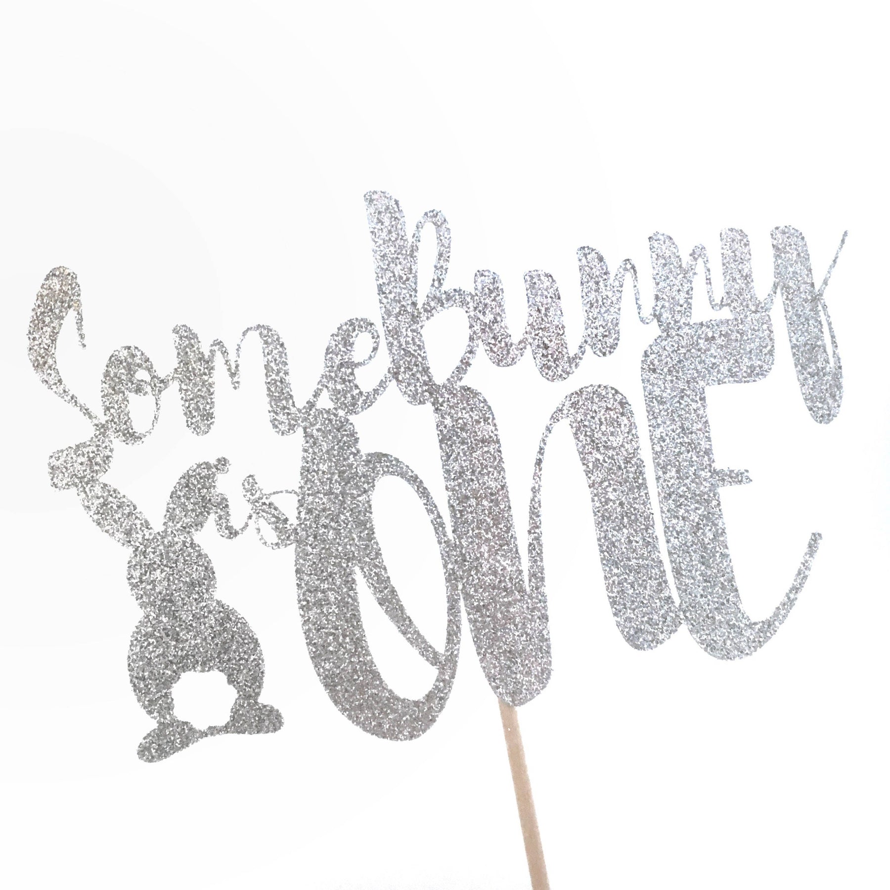 Some Bunny Is One Cake Topper, Bunny theme decorations, rabbit party, Glitter First Birthday Decor, 1st Cake Smash