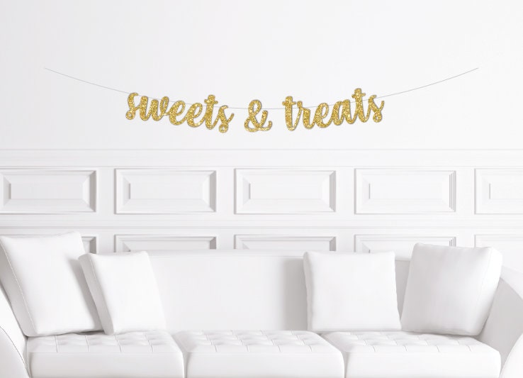 Sweets & Treats Cursive Banner / Gold Script Glitter Dessert Table Sign / Bridal Shower Banner/ Wedding Candy Bar Banner / Sweets Table