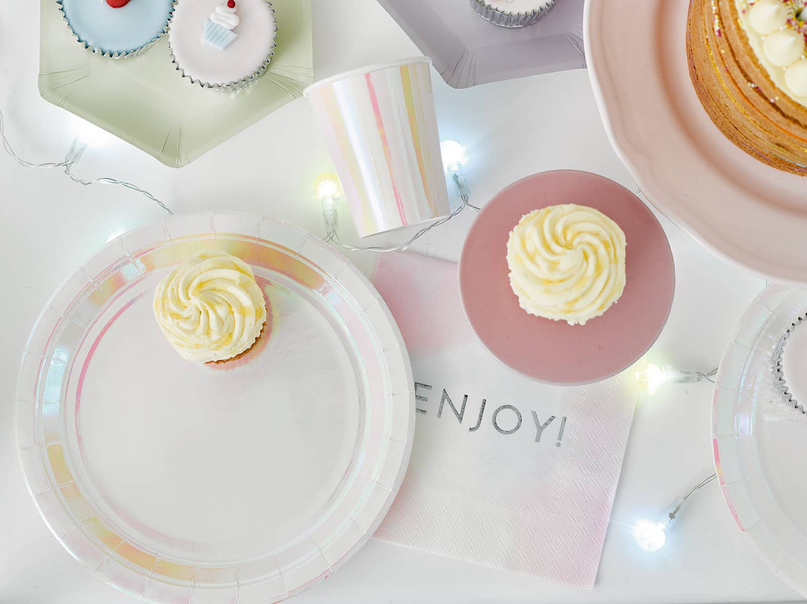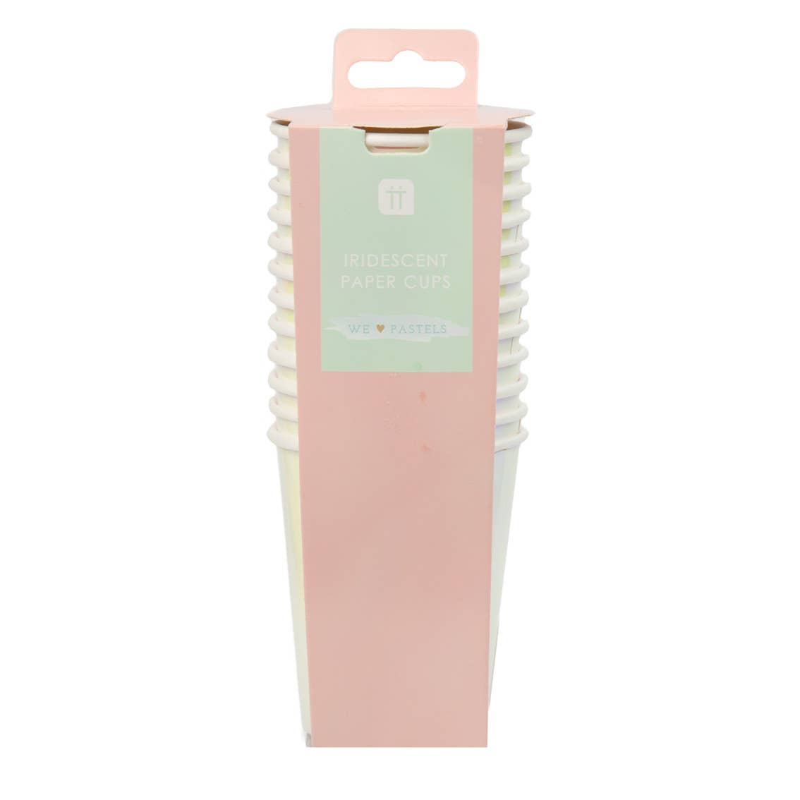 Shimmer and shine with these stunning on-trend iridescent pastel-pink paper cups. These cups come in packs of 12 and are a shining addition to party Decorate your get-together with other party pieces from the We Heart Pastel range, including iridescent pink and plates, and lovely watercolour pastel napkins with foil detail.