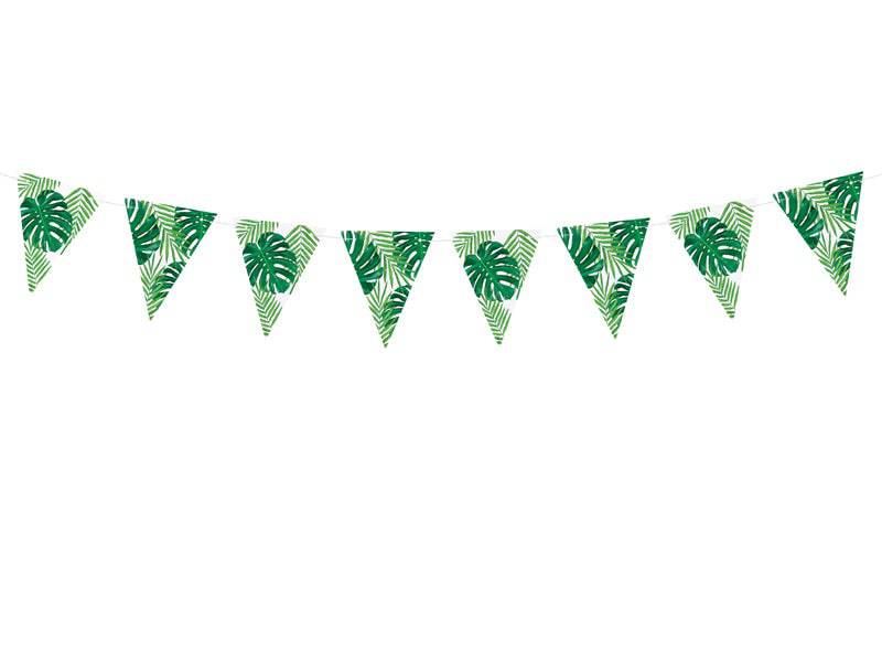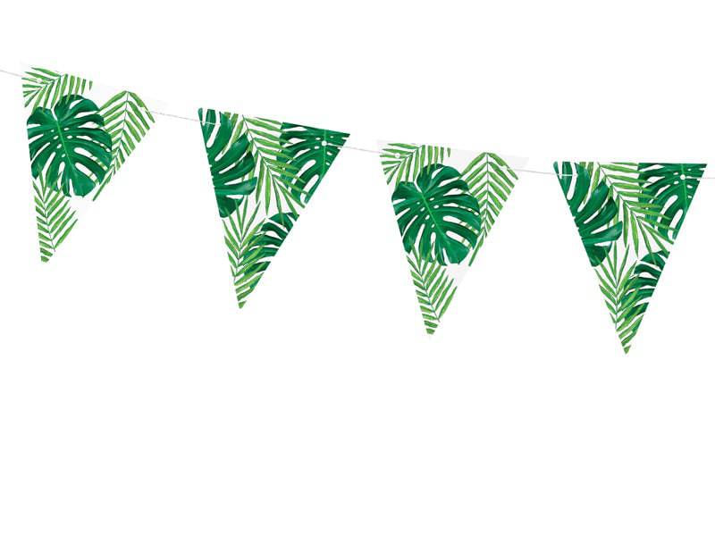Make your party island-ready with our tropical party garland! This garland has leaf designs in bright green colors, perfect for any Hawaiian theme or tropical party. The hanging garland is also great for birthday parties and baby showers.